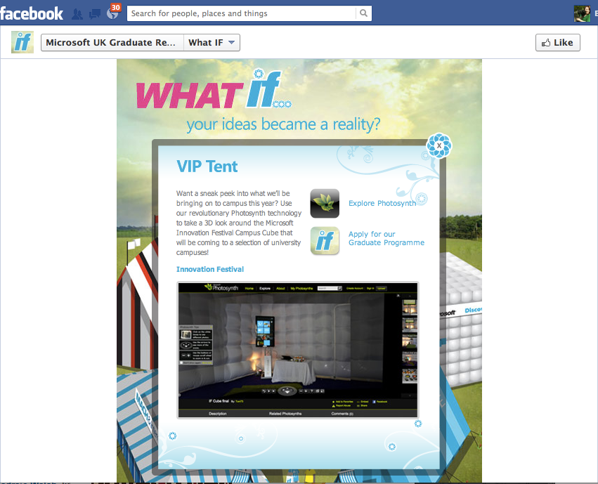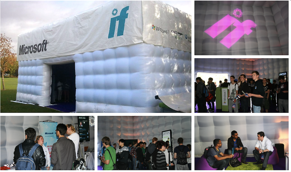 We brought the spirit of a festival to life in a big way across campuses everywhere…in the form of a ginormous, attention-getting white “bubble” cube. On display inside: the latest Microsoft technology. In the weeks prior, teaser posters and social media feeds hinted that the Innovation Festival was coming to campus. On entry, festival goers were given a lanyard-style brochure. The fun continued online – grads could tour the different event tents to learn more about Microsoft and get a glimpse of what life would be like working there.